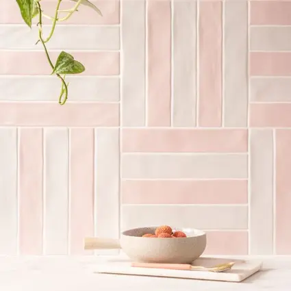 "Playful pastel tones with a textured, sugary finish. These kit-kat style bricks have a modern-rustic feel, in tones of pink, blue, white, green and grey. Use alone for a subtle pop of colour or mix together for a gentle rainbow glow. Tileworks, our collection of contemporary tiles, reflects the most up to date trends in interior design, with formats and finishes in a variety of tastes for a multitude of settings and locations."