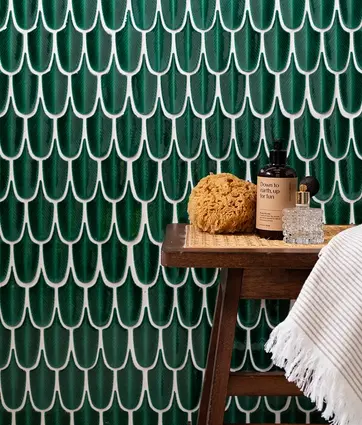 Capturing the elegance of bird's feathers, Preen has a three-dimensional effect which emulates the veining on real feathers. With a beautiful gloss finish that helps give depth to the bright, metallic tones, this mosaic tile makes for truly unique interiors.