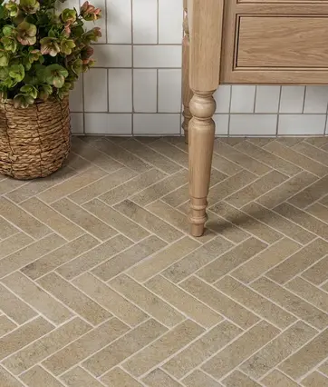 A porcelain replica of our most popular limestone, Buscot Parquet Porcelain captures the tactile, three-dimensional feel of natural stone. With its warm honey-cream tone and authentic texture, this versatile tile brings timeless charm to any space—along with the durability and easy care of porcelain.