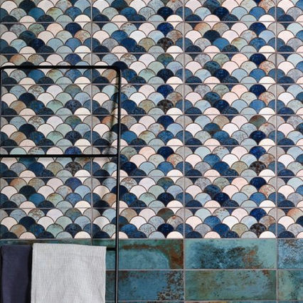 A visit to Wightwick Manor in the West Midlands revealed original tiles made by William Frend De Morgan, a 19th century potter and tile designer who rediscovered the lost techniques of reactive metallic tile glazing. Our Wightwick ceramic wall tiles reflect his work, with jewel-like tones, a textured gloss finish and iridescent variations.