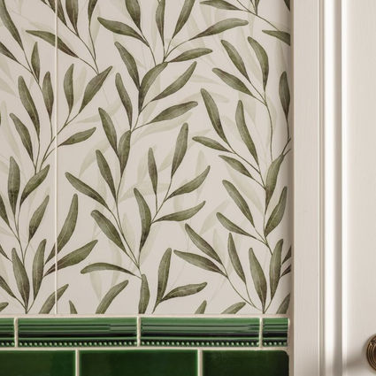 Willow is a soothing design featuring soft green foliages inspired by trailing willow branches.