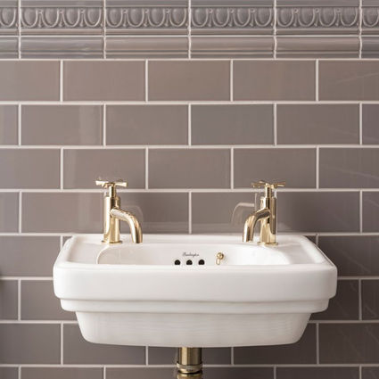 "A versatile grey, London Stone can look both classic and contemporary. These versatile Half Tiles can be installed in many different layouts, and co-ordinate with the field tiles and all of the mouldings. Our Artworks range comprises ceramic wall tiles, mouldings and decorative pieces for bathrooms, kitchens and beyond. Its rich, intense colours, deep translucent glazes and finely crafted details are perfect for recreating both classic and contemporary styles."